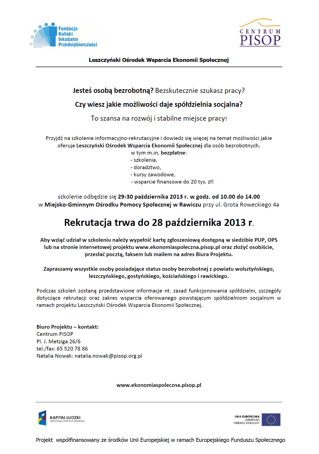 Szkolenie informacyjno - rekrutacyjne dla osób bezrobotnych